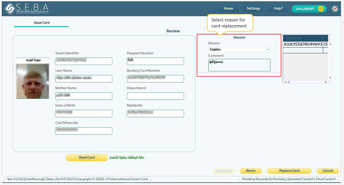 A card replacement can be done by reading the the old card details and replace new card.